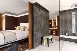 The St. Regis Shanghai Jingan This luxurious hotel offers spacious rooms with views of the skyline, marble bathrooms, and a rooftop pool at the heart of Shanghai. There is also a restaurant awarded a star in Michelin on the premises, besides a stylish lounge.