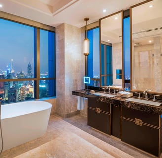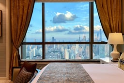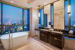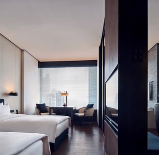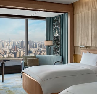 The Ritz-Carlton Shanghai, Pudong: This iconic hotel features sumptuous Art Deco-style rooms with spectacular views of Huangpu River and The Bund. Besides that, it offers an indoor pool, exclusive spa, and a rooftop bar with breathtaking city views1.